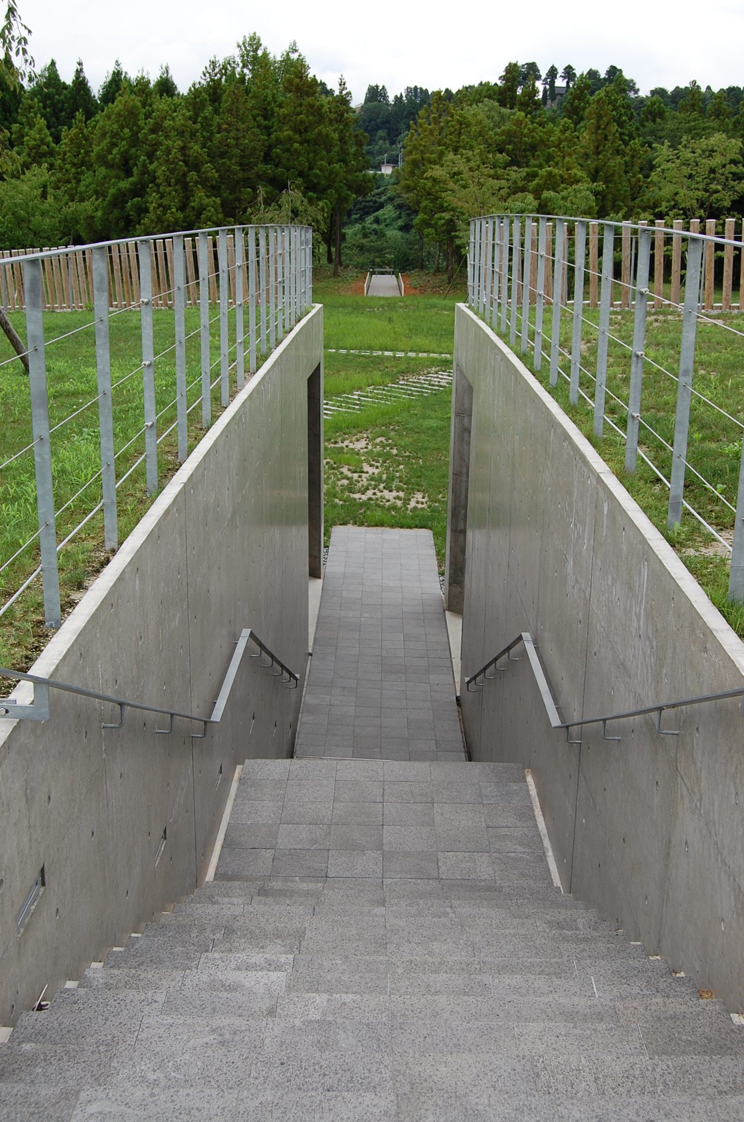 日本を象徴する「桜」を主題として、古来の日本庭園にみられる「借景軸」と「抽象化」の概念を、空間の構成と表現に取り入れています。それによって敷地を越えたより大きな環境特性を、体感することができるよう考慮されています。 雄大な自然を背景に、桜の織りなす繊細な現象を感じ取ることによって、日本や黒部地域の良さを再認識する場となれば、との願いをこめました。